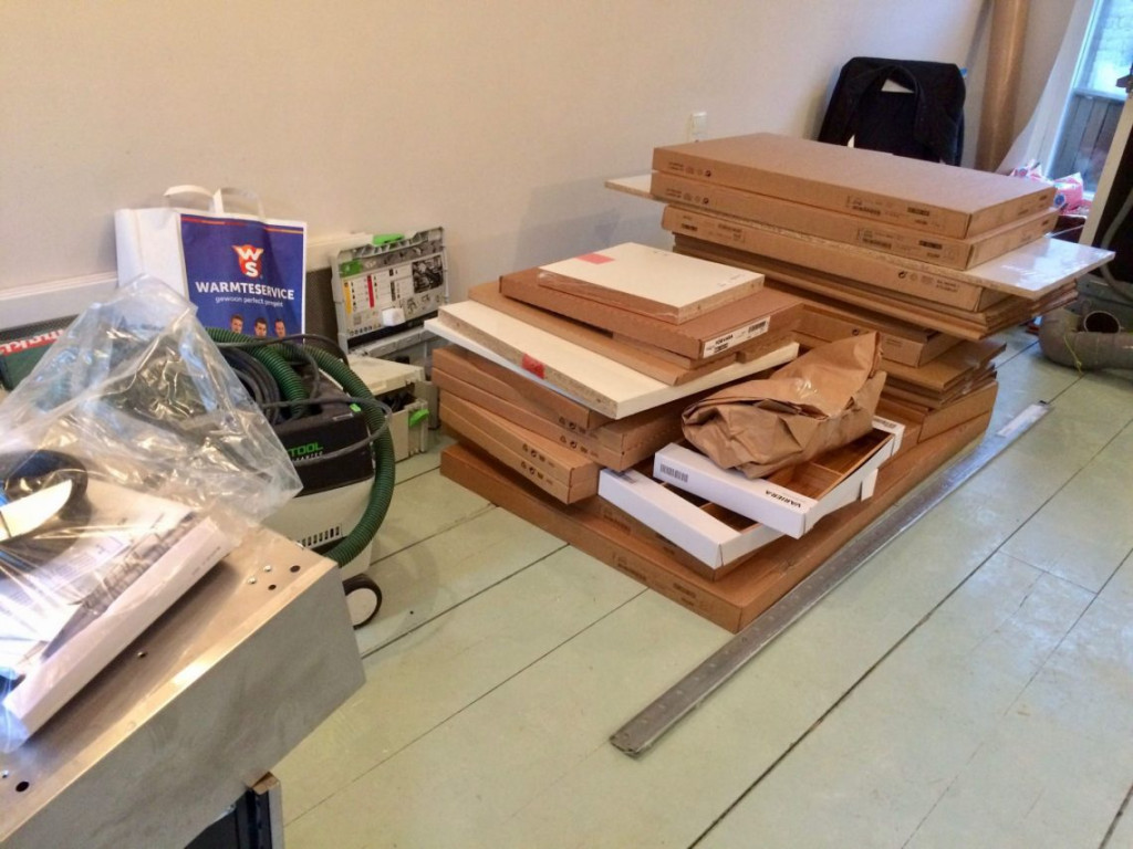 In de keuken is een nieuwe elektragroep voor de oven aangesloten. Vandaag hoefde ik dus helemaal niet veel meer voor te bereiden, voordat morgen de nieuwe keukenkastjes geplaatst gaan worden.