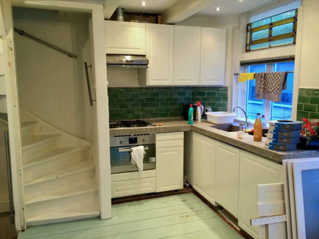 Vraag is: wat te doen met het gasfornuis. Het huidige gasfornuisje heeft 4 verschillende knoppen (wat er nogal scharrig uitziet) en je moet ‘m aanmaken met een lucifer. Hessel heeft eigenlijk een hekel aan het ding, en vind het een vlag op een modderschuit, maar dan andersom. Het hele keukentje is nu top, met mooie kastjes en nieuwe apparatuur en dan zo’n stom kookplaatje. Maar ja: wij zeggen ook steeds tegen elkaar: het is voor de huurders, het mag ietsjepietje minder perfect dan dat we het voor onszelf zouden willen. Aan de andere kant: een nieuwe gasplaat is 123,- gedeeld door twee (want mijn broer en ik delen de kosten). Dus dat is allebei 60,- en dat is tien pakjes sigaretten die ik toch al niet meer rook. Beslissingen beslissingen beslissingen.