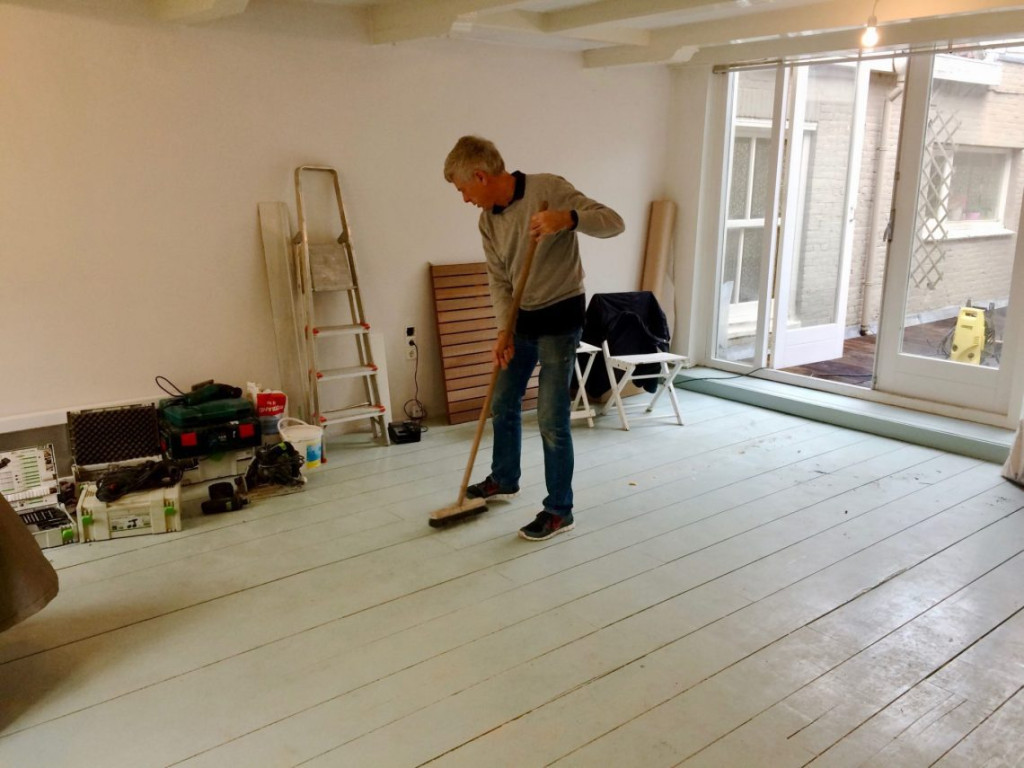 Hetzelfde probeerde ik met de vloer, maar dat lukt niet helemaal. Dat moet volgende week een keer met voegenfris.