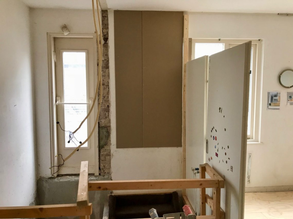 Ikzelf kwam na al deze avonturen niet meer echt lekker op gang. Ik heb twee gipsplaten tegen onze trapgatmuur gelijmd, nog maar een keer wat deuren neergezet om te zien hoe het zou voelen als dat een logeerkamermuur was, en ben lekker vroeg naar huis gegaan. De rest maken we over een paar weken af.