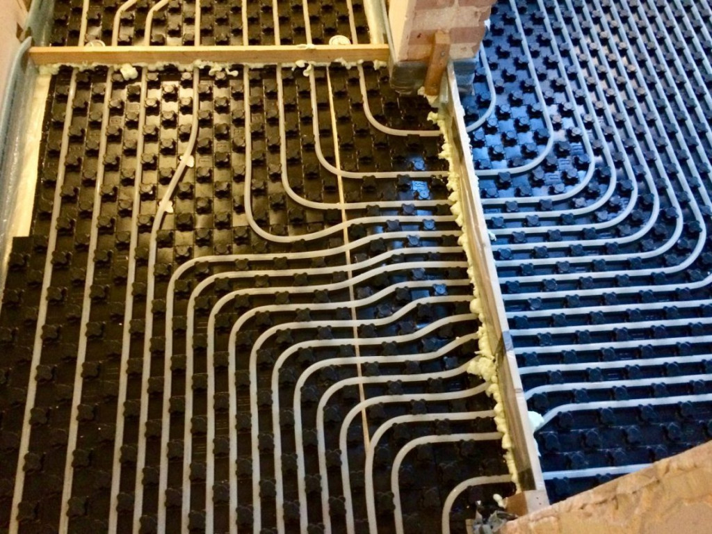 Vandaag moest er dus van alles en nog wat gebeuren. Alles moest gezogen worden, want we willen geen kleine isolatiesnippers in de nieuwe vloer zien bovendrijven.De laatste kieren in de vloerverwarming-dammetjes moesten met Pur gedicht worden.
