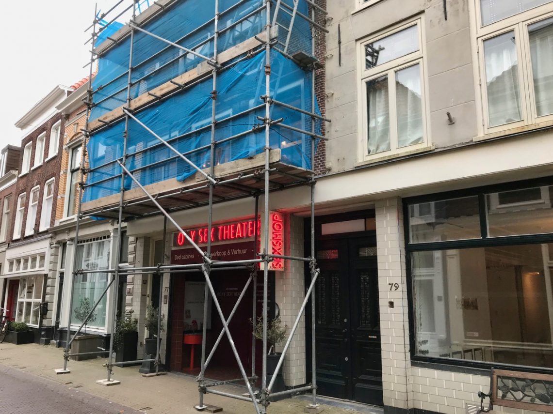 Trouwens, over de straat en over Kerst gesproken; het was vandaag een dolle boel in de straat. Toen ik vanochtend aan kwam, stonden er allemaal vrachtwagens op de stoep. De buren van het theater gaan de voegen vernieuwen. Heel chic, maar ook een beetje onhandig dat hun eerste etage over onze woonetage heen hangt. De steigerbouwers hadden voor het gemak maar een flink stuk van onze voordeur dichtgebouwd. Gelukkig was ik heel vroeg, en konden ze na wat overleg de steiger nog zodanig aanpassen, dat wij gewoon weer door de voordeur naar binnen kunnen. Ergens de afgelopen dagen is ook de gemeente in de weer geweest. We zijn onderdeel van de grote Kerstverlichtingsactiviteiten in Haarlem.