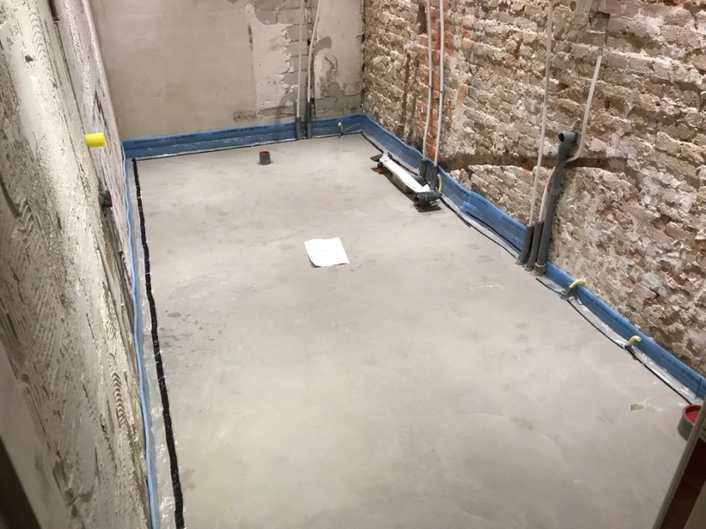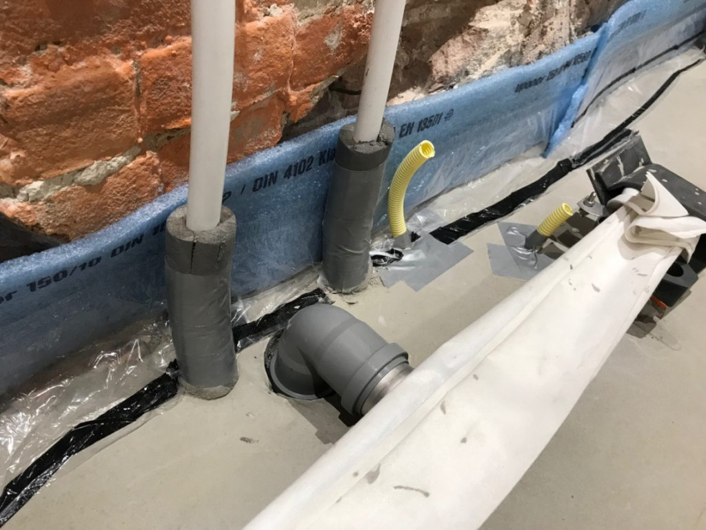 Het ziet er behoorlijk profi uit, al zeg ik het zelf. Toen ik ook nog gaten had geboord voor de nodige aarde-draden, waar straks alle metalen delen van de badkamer mee verbonden worden, en flexibele PVC-elektrabuisjes in die gaten had bevestigd, dreigde ik even niet meer te weten wat ik nu nog voor nuttigs kon doen.