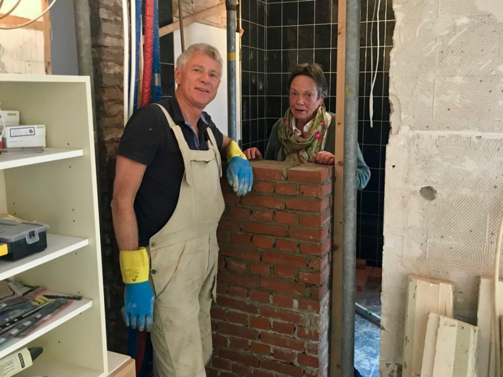 Even op de zaken vooruitlopend: de muur staat nog. Het eerste wat Hessel vandaag deed toen we het huis binnenkwamen was flink sjorren aan een steen. Muurvast.