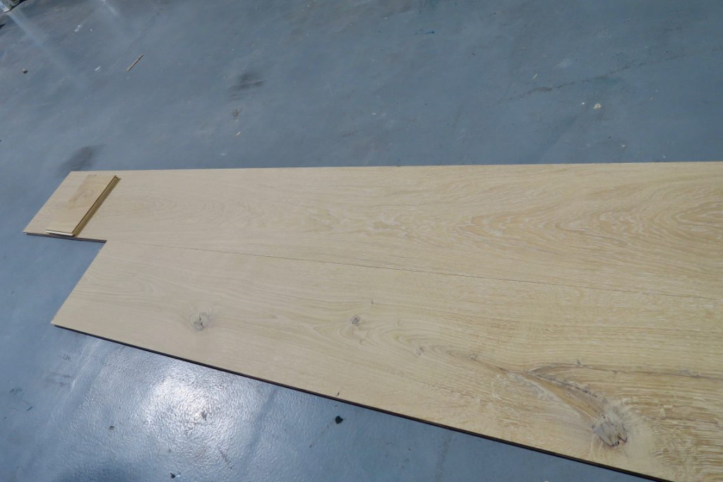 Heel toevallig waren er net twee planken van een klus overgebleven in de kleur die wij hebben uitgekozen. Puur Muis Grijs. We hebben ze even op de grond gelegd.