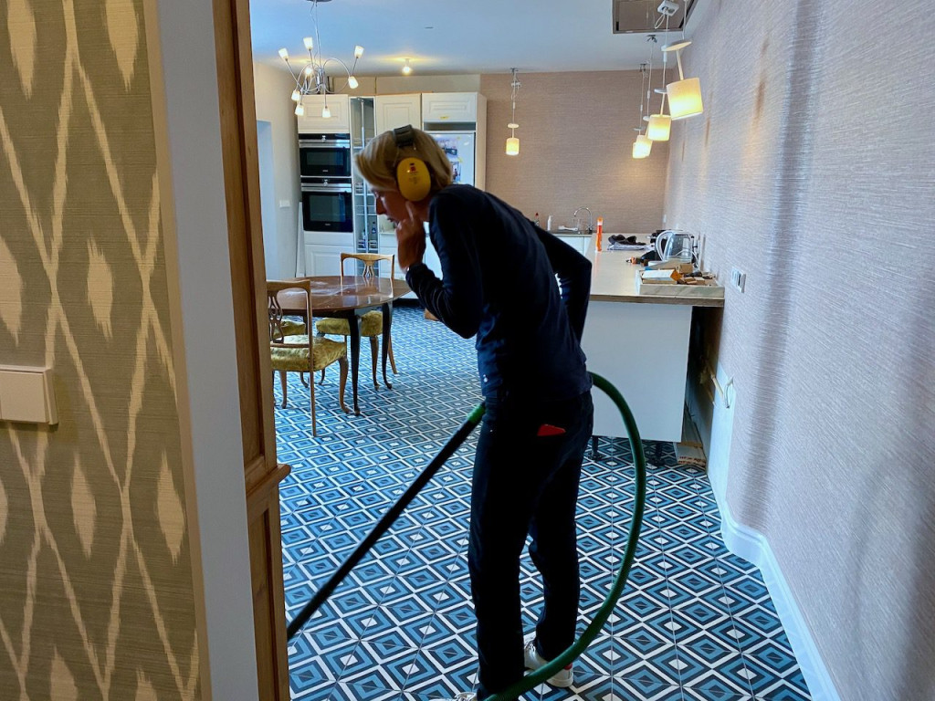 Ik zag voor het eerste het behang ‘live’ vandaag en was zeer onder de indruk. Het is niet normaal mooi in het echt. Heel warm en gezellig. Het voelde nog even als een vreemd huis, maar toen ik de tafel en de kast had afgenomen met Andy, begon ik te wennen. Het is top en met niemands huis te vergelijken. Niet dat dat een doel was trouwens, maar het is moeilijk iets te vinden van iets waar je volstrekt geen referentiekader van hebt. Vind ik.