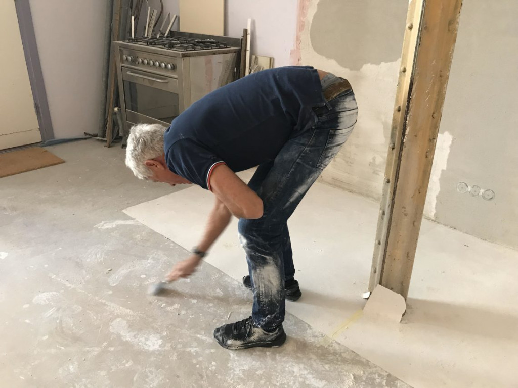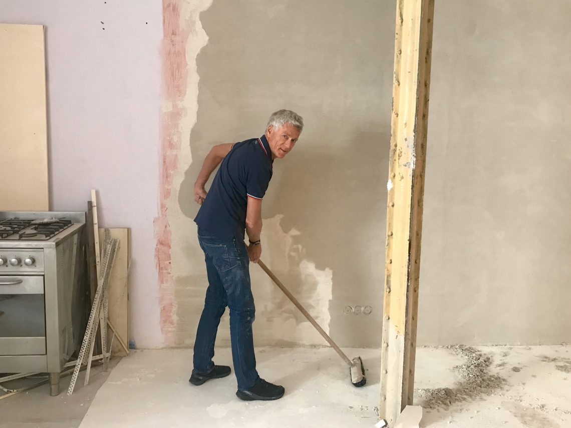 We gingen aan de slag om alles schoon te maken en voor te bereiden voor maandag. Hessel wil dan -stapsgewijs- starten met het stucen van de grote gele muur. Ik vond het wat veel gevraagd van iemand die al drie jaar zegt “het stucen ga ik niet zelf doen, dat is veel te zwaar” en al weken een beetje in de lappenmand zit wegens geen puf. Hij vertelde vanmorgen hoe hij eea gaat aanpakken en dat hij het in een week af kan krijgen. Elke dag een bepaald stuk. Nog even was ik bang dat hij het zelf gaat doen om kosten te besparen, maar inmiddels ben ik er achter dat hij het gewoon enorm kicken vindt dat hij het nu kan. En dat Jan Verburg laat weten trots op hem te zijn motiveert ook zeer ….