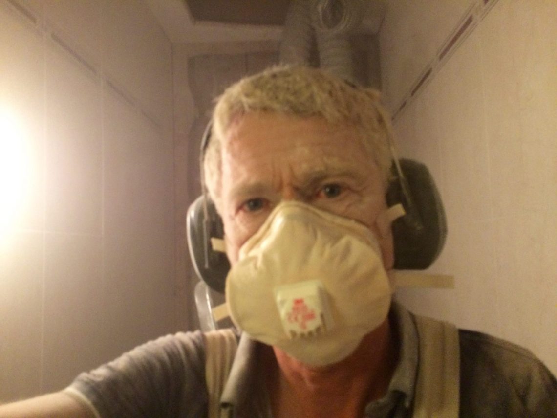 De WC was aan de beurt om gesloopt te worden. En omdat het huis net helemaal schoon was, besloot ik tot een drastische maatregel. Ik liet de WC deur tijdens het werk gesloten, en zette de afzuiginstallatie die in het huis zit sinds er eigenlijk een wietplantage afgezogen moest worden op volle kracht aan. Drie ventilatiepijpen, dat heeft niet iedereen in zijn WC!