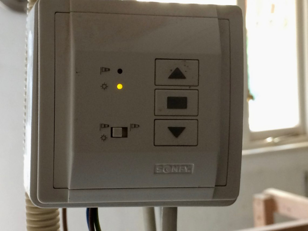 Ik heb volgens de instructies van meneer Somfy een beetje in de ingewanden van het systeem zitten prutsen, en nu werkt alles volautomatisch en precies naar wens.
