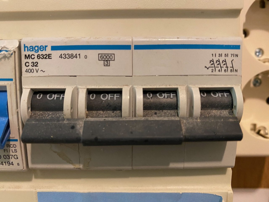 32 ampere drie fasen zekering in de stoppenkast, dat hebben niet veel mensen. Ik heb dat ook nog nooit gehad. Of zelfs maar van gehoord. Eigenlijk had ik geen flauw idee hoe ik dit moest aansluiten.