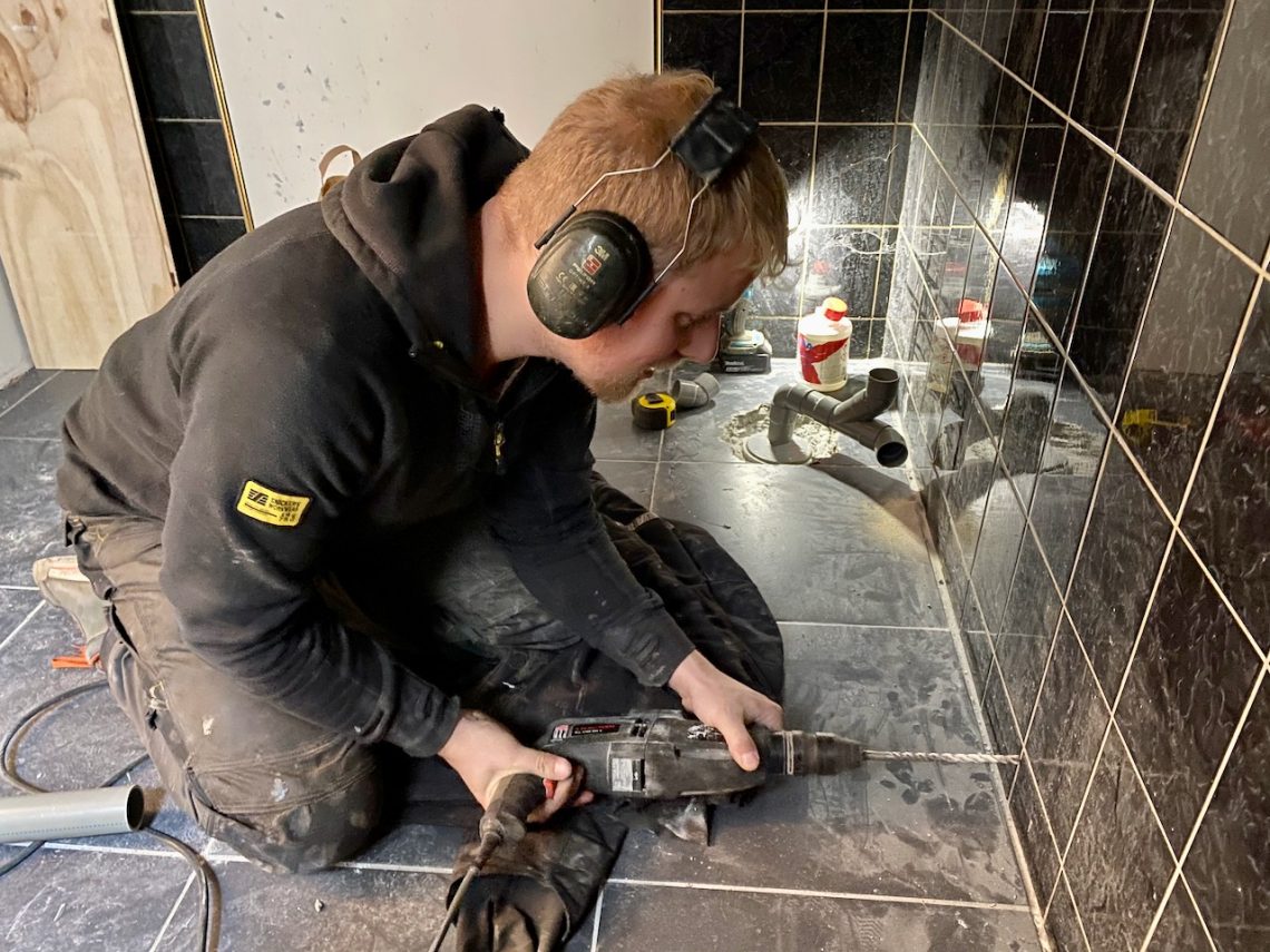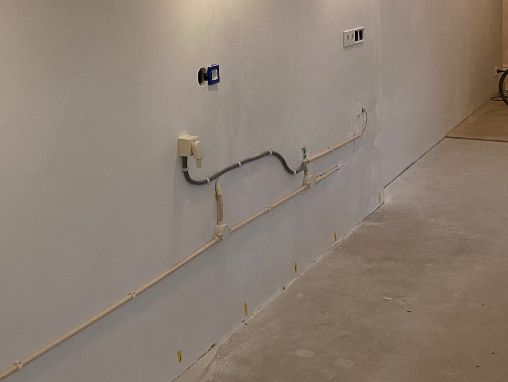 Dat is een onrustig uurtje in de ontmoetingsruimte van de buren geweest, maar onze wasmachinekamer is al bijna klaar voor gebruik.