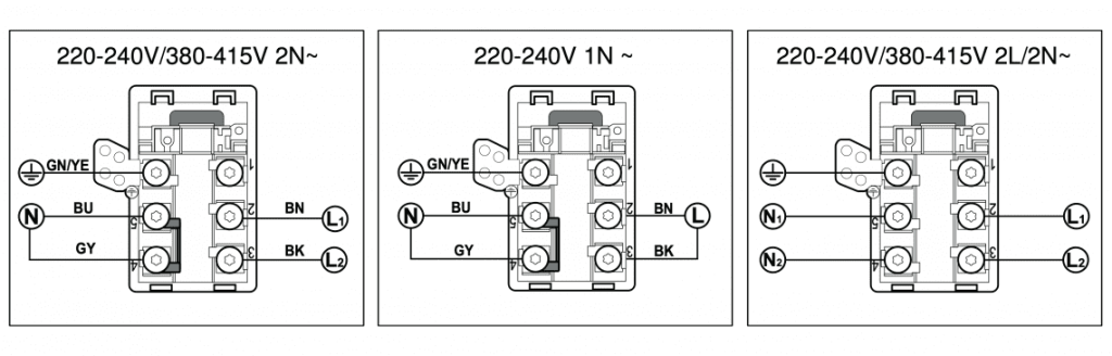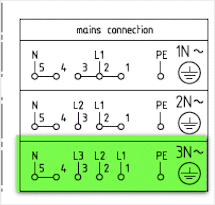 Daar begreep ik dus helemaal niks van. Een paar avonden internet zelfstudie later kon ik het schema decoderen. Maar ik kon het nog steeds niet begrijpen. Want wij hadden drie-fase stroom, en in dit schema kwamen ze niet verder dan twee-fasen.