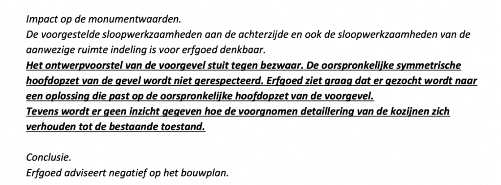 Terug naar de vergunning: donderdag ingeleverd; alles weer rustig en blij. Vrijdag einde dag kregen we bericht van de gemeente: de voorgevel is afgekeurd door de afdeling Erfgoed. Alles weer onrustig haha!