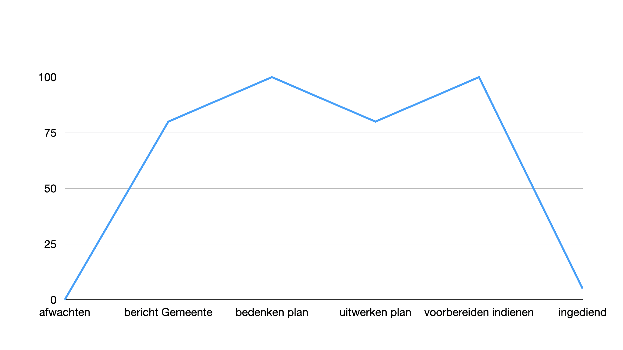 Afgelopen donderdag moest de nieuwe aanvraag voor de vergunning voor 77 (theater) de deur uit. Hessel bereidt dit zoals we weten minutieus voor. Inmiddels zie ik een soort lijn in de emotie en energie die in zo’n vergunningsaanvraag gaat zitten. In het beeld hierboven heb ik dat even in een schema gezet.