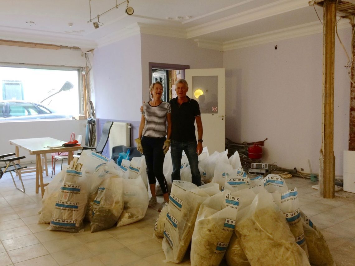 Alle materialen hebben we gesorteerd in de woonkamer en per soort ingeladen in de auto. Hessel ging een hele auto vol gips wegbrengen. Terwijl hij weg was, maakte ik de tweede lading gereed en tilde vijf stapels hout de trap af. Ik begrijp nu dat mensen verslaafd raken aan de sportschool. Je denkt nergens meer aan, zweet je rot en beukt gewoon door. Dat gevoel.