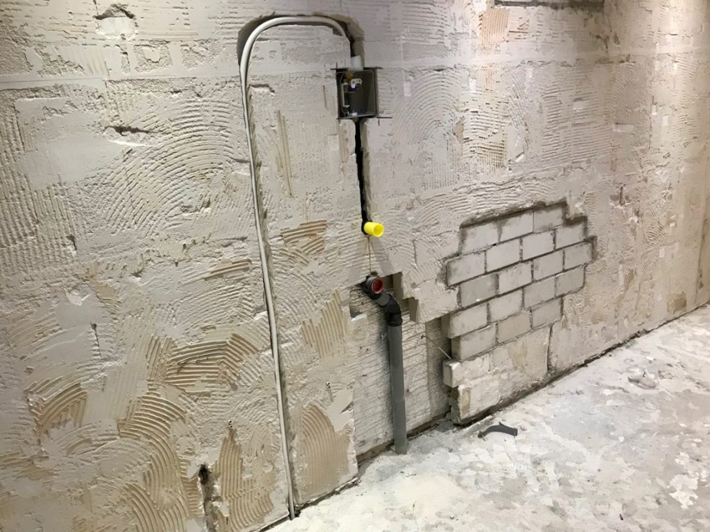 Het ging allemaal naar wens. Aan het eind van de dag waren alle waterleidingen in de badkamer doorgevoerd.