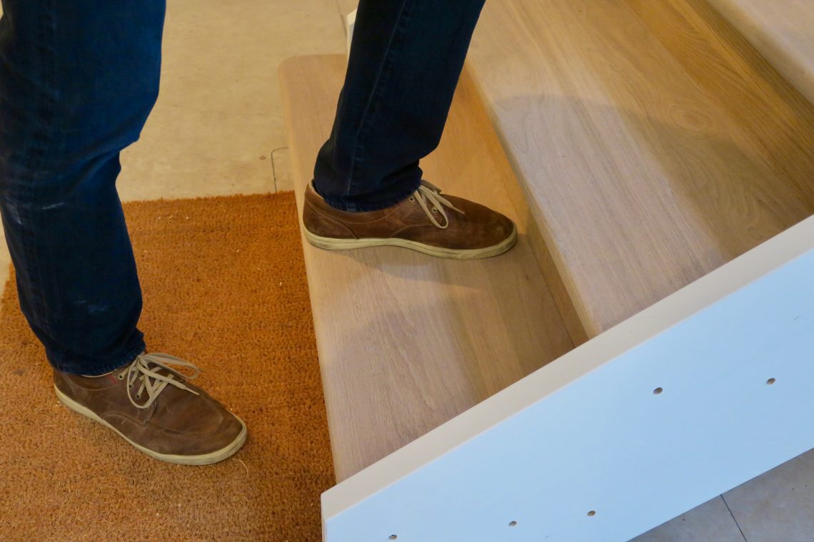 Mensen nemen nooit een plint. Maar ik vond dat onze trap die echt nodig zou hebben om helemaal perfect te zijn. Snel pakte Jan de plint en legde hem op de trap.