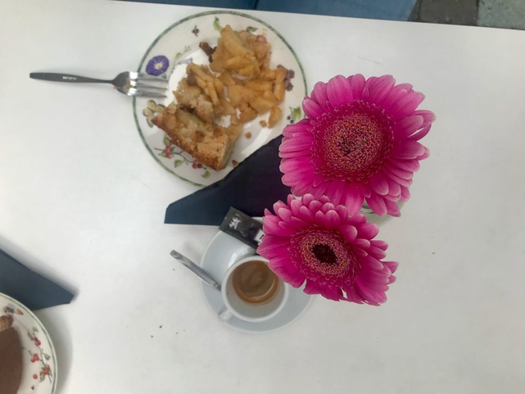 Toen we naar huis liepen dronken we nog een kopje koffie bij “meneer Frans” die het mooiste binnentuin terras van de stad hebben. En de lekkerste appeltaart. En zulke leuke dames in de bediening. Het is gewoon bij ons om de hoek.