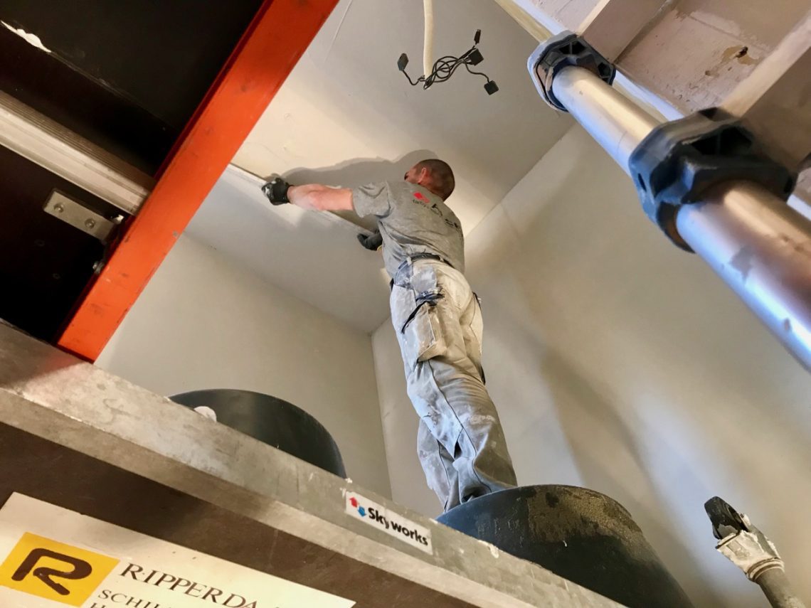De trap van lichte zeden was door de mannen vlak voordat ze weggingen weer op het schoongepoetste rolsteigertje van Jan Verburg gezet, zodoende kon ik hem met gemak uit zijn hangar (zonder “d”) rollen om hem weer op zijn oude plek terug te zetten. Het is op een paar witte muren na net alsof er helemaal geen Polen geweest zijn.