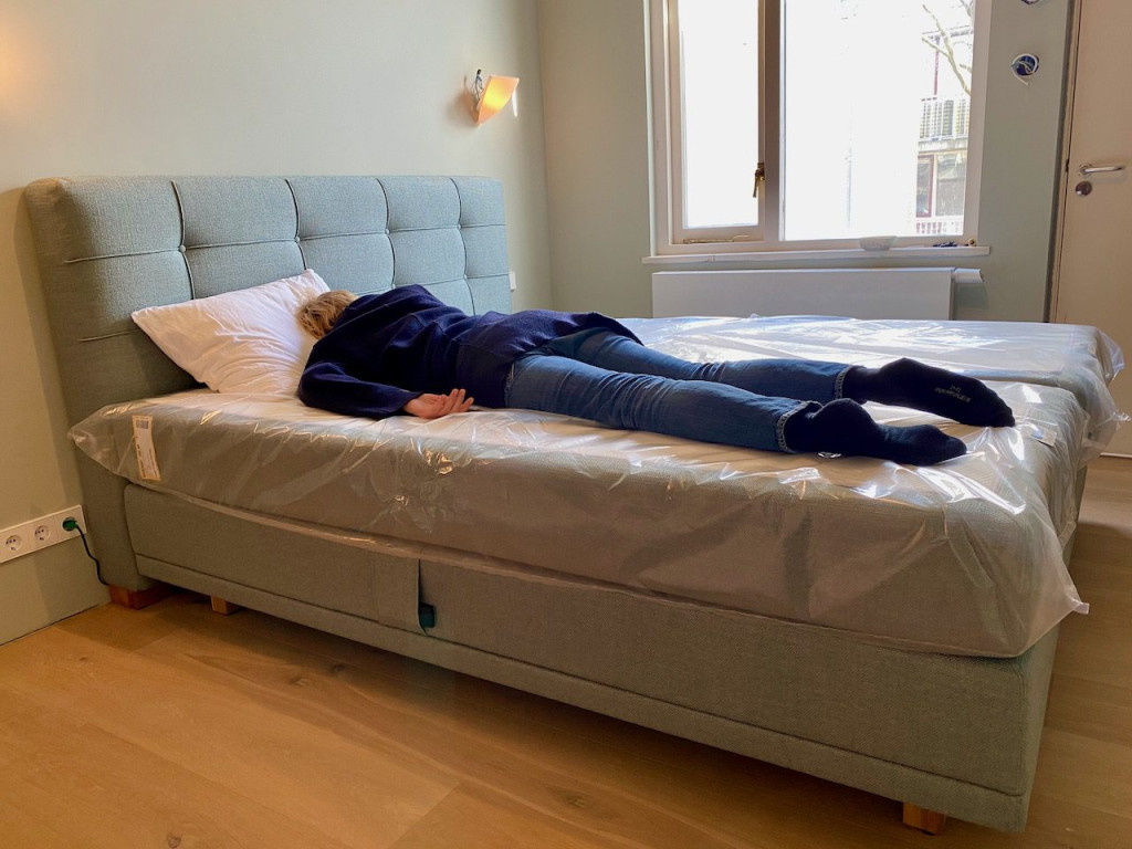 Natuurlijk mocht ook ik in het bed liggen. Voor de lol had ik een kussen meegenomen van huis. Ik heb op deze plek al vaak op de grond gelegen. Nu echt. Ik had vannacht ongelooflijk lang en diep geslapen, maar toen ik daar in onze aankomende slaapkamer lag, was ik feitelijk meteen weg.