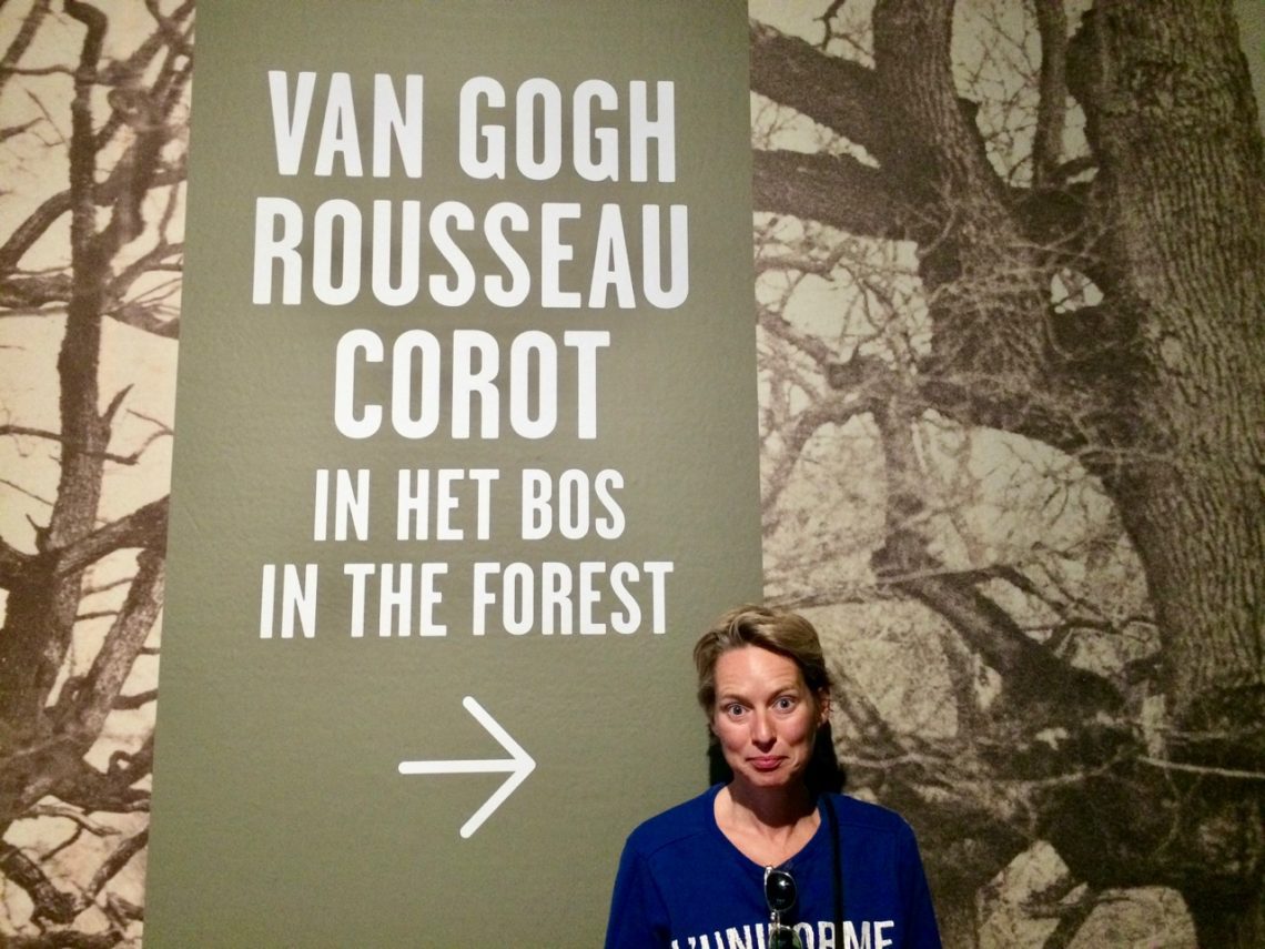 Omdat Amsterdam helemaal vol zit met toeristen die onder andere in lange rijen voor de musea staan, had ik voor vanavond om 20.30 kaartjes voor de tentoonstelling in het Van Gogh besteld. Dus na de koffie liepen we daar even naar toe. De foto laat zien dat ik behoorlijk moe was na het sjouwen en hardlopen en van hair & make-up ontbreekt elk spoor….