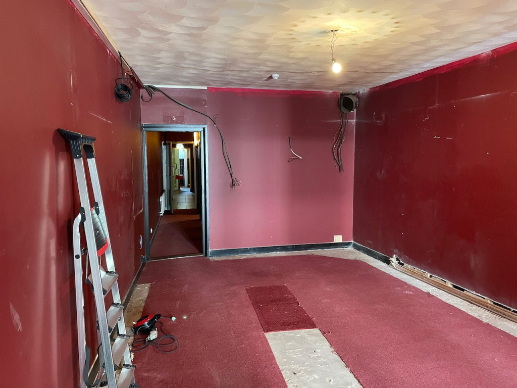 Er is een liedje “het is hier binnen beter dan buiten” maar dat geldt voor het buurpand niet. Het is een afgeleefde morsige onhygiënische bende en telkens als je binnen bent geweest heb je zin om een uur in een bad met kokend water en chloor te zitten. Tel daarbij op dat ik voor mijn freelance klus van 9.00 – 17.00 continue in onze eigen woonkamer aan het videobellen ben. Dat tezamen maakt dat we het toch een goed idee vonden om van de voormalige herenbioscoop een werkkamer te maken. Om er doorheen te durven lopen moest eerst het pand schoongemaakt worden. Geen enkel schoonmaakbedrijf dat ik belde had tijd of zin. Een calamiteiten bedrijf vraagt al snel 2.500,- dus ik besloot zelf de rubberlaarzen aan te trekken.