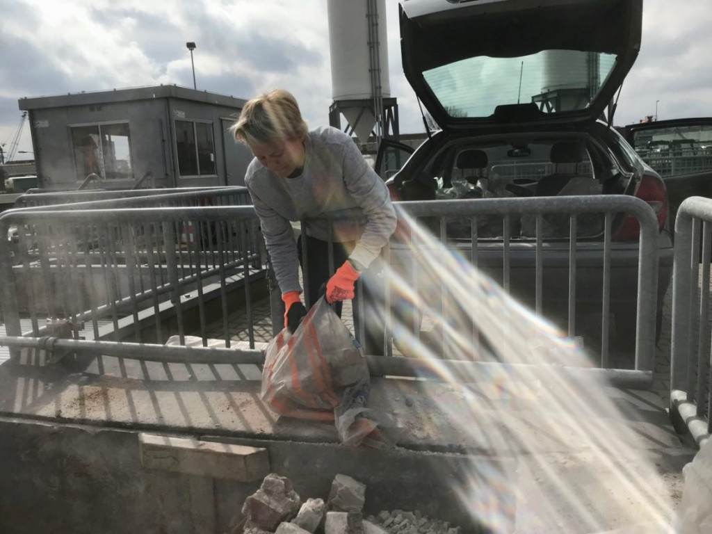 Het is een beetje hetzelfde verhaal als meestal. Er ligt een hele stapel met stenen in zakken.