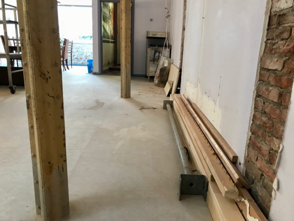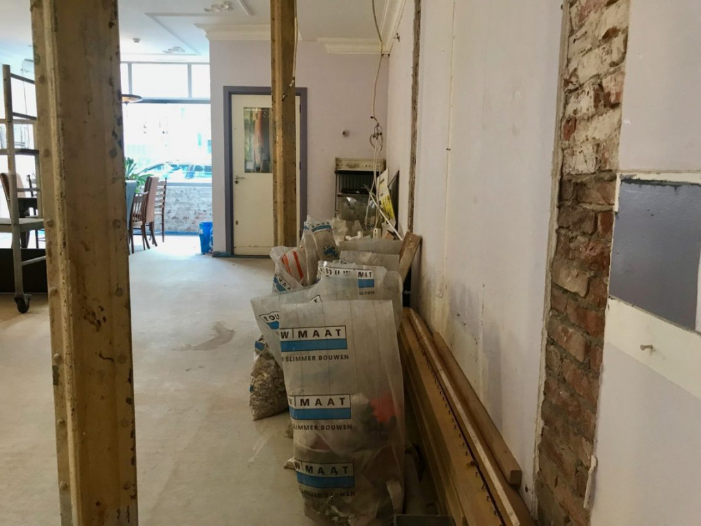 Vervolgens haalden we alle spullen uit de kast die tegen ‘de muur’ in de keuken stond en verwijderden de kastgedeelten die we niet meer nodig hadden. Het was goed om alles weer eens uit te sorteren en schoon te maken en rommel weg te gooien, evenals keukenkastjes die we zeker niet gaan gebruiken.