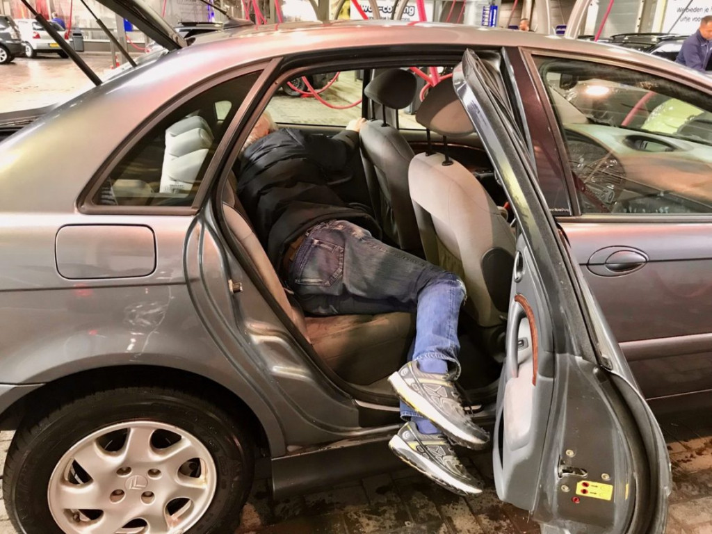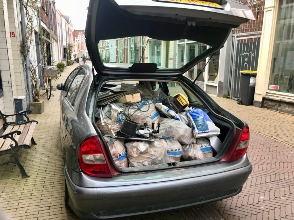 Die zakken doen we in de auto.