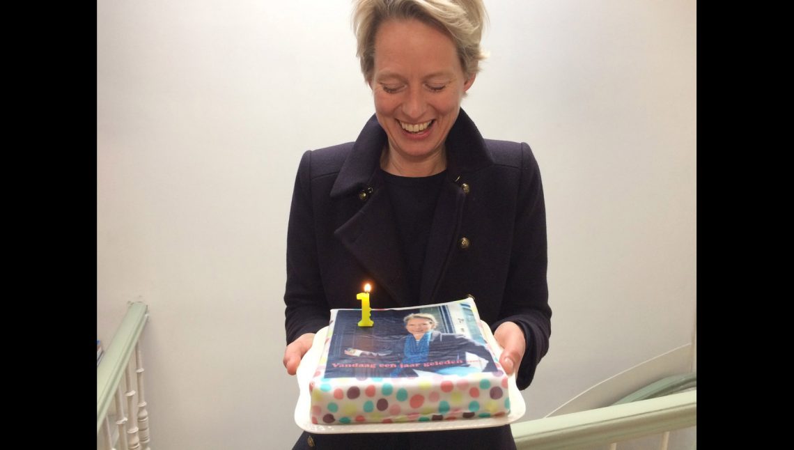 Hoe attent is die Hessel toch! Vandaag is het exact 1 jaar geleden dat we ons huis kochten en ik de diepvrieszak met sleutels kreeg overhandigd van Aad G. Ik weet absoluut dat het op 11 april was, maar ik had vanmorgen de connectie even niet gemaakt. Vandaag had ik wel Hessel aan de telefoon gehad over kleine dingen, maar het was een complete verrassing toen ik thuiskwam en er een 1-jaars-huis-taart op tafel stond. Met een foto! Echt Hema hahaha!