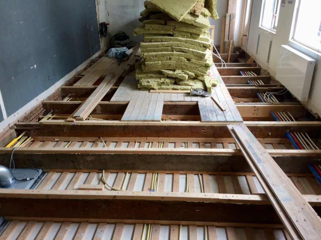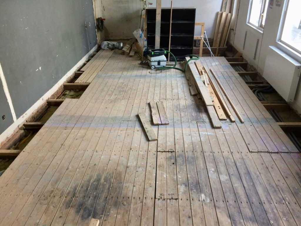 Eindelijk was het zover: De slaapkamervloer mag voor een tijdje weer mee gaan doen. Gisteren had ik de laatste elektrahandelingen verricht, en vandaag kon ik me op het terugplaatsen van de vloer concentreren.