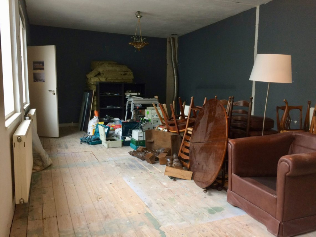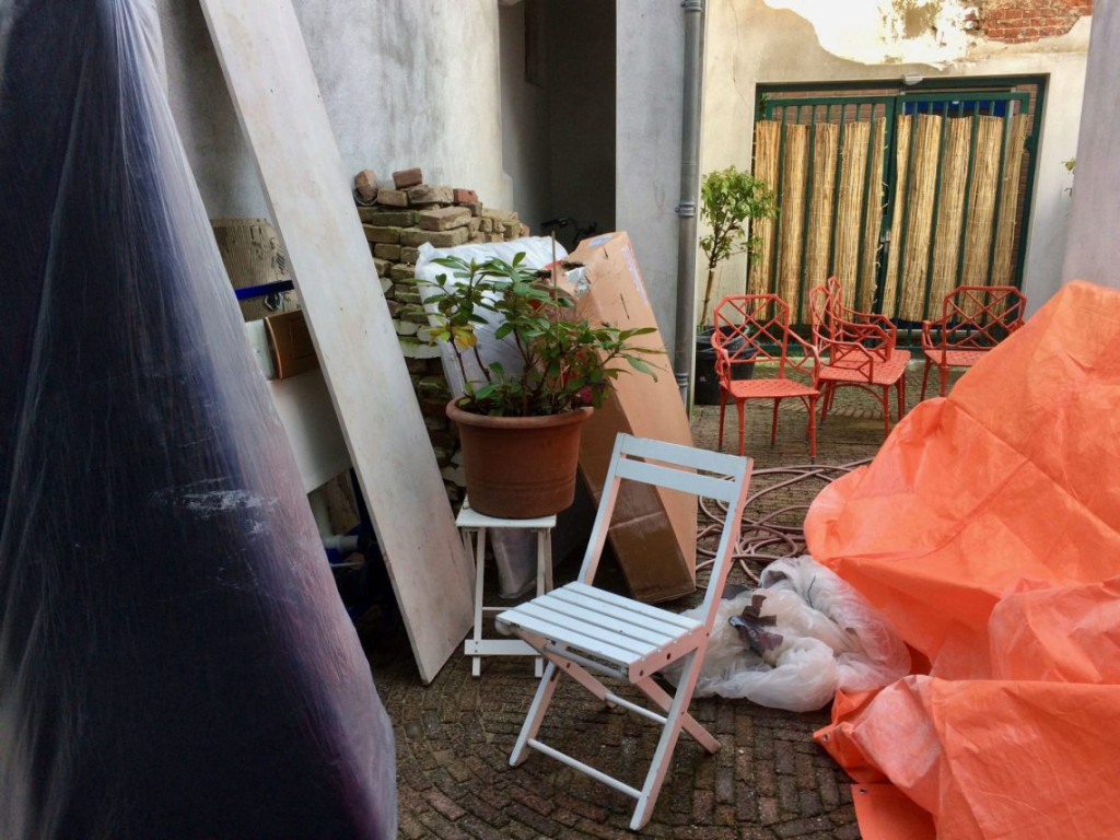 Bart en Paco werkten lekker in de woonkamer door, en ik ging de keuken verder leeghalen. Al het losse spul staat inmiddels op de slaapetage. We lijken daar wel op een kringloopwinkel.