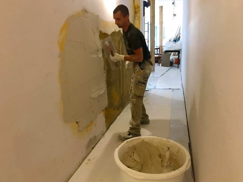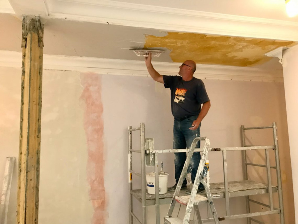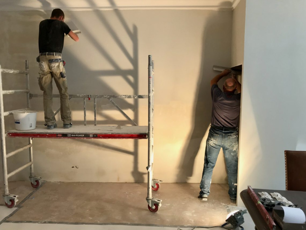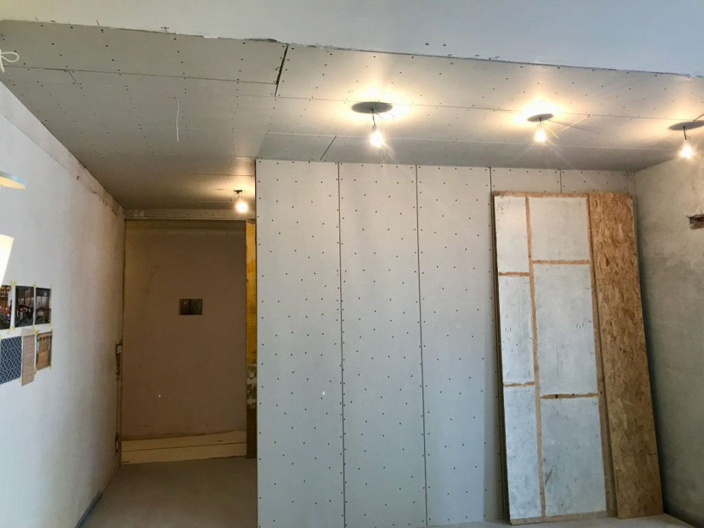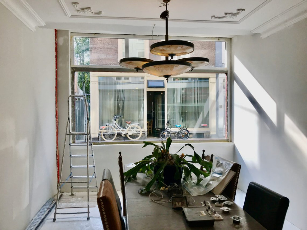Boven dit blog zien we op de achtergrond de toekomstige kitchenette. Alsof het altijd al zo was, met die uitbouw aan de muur.