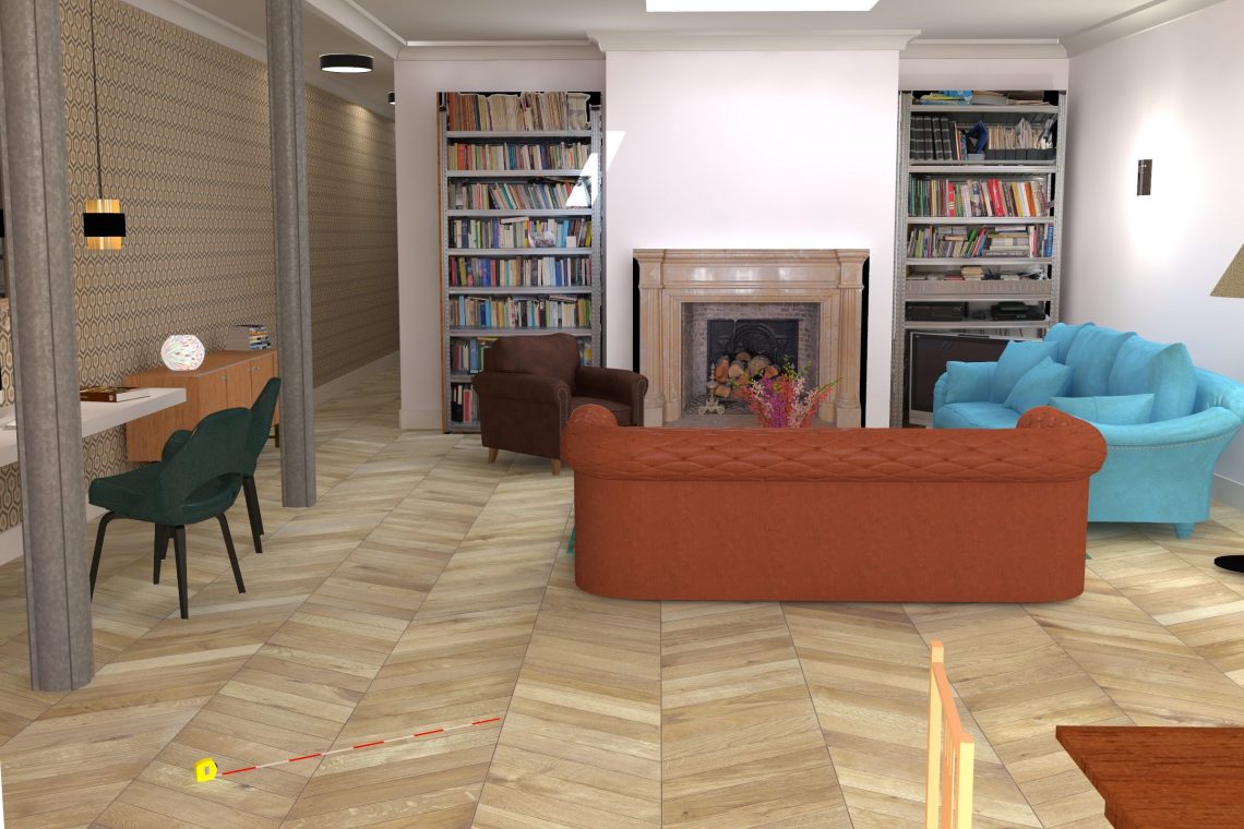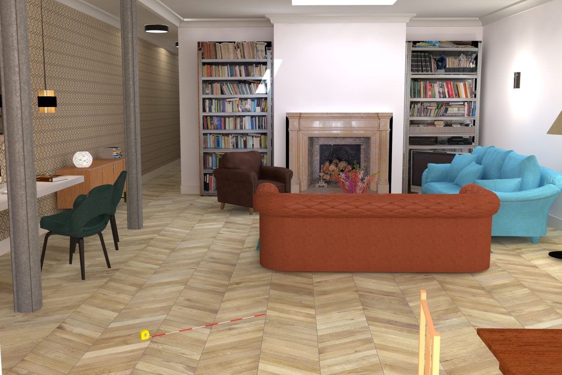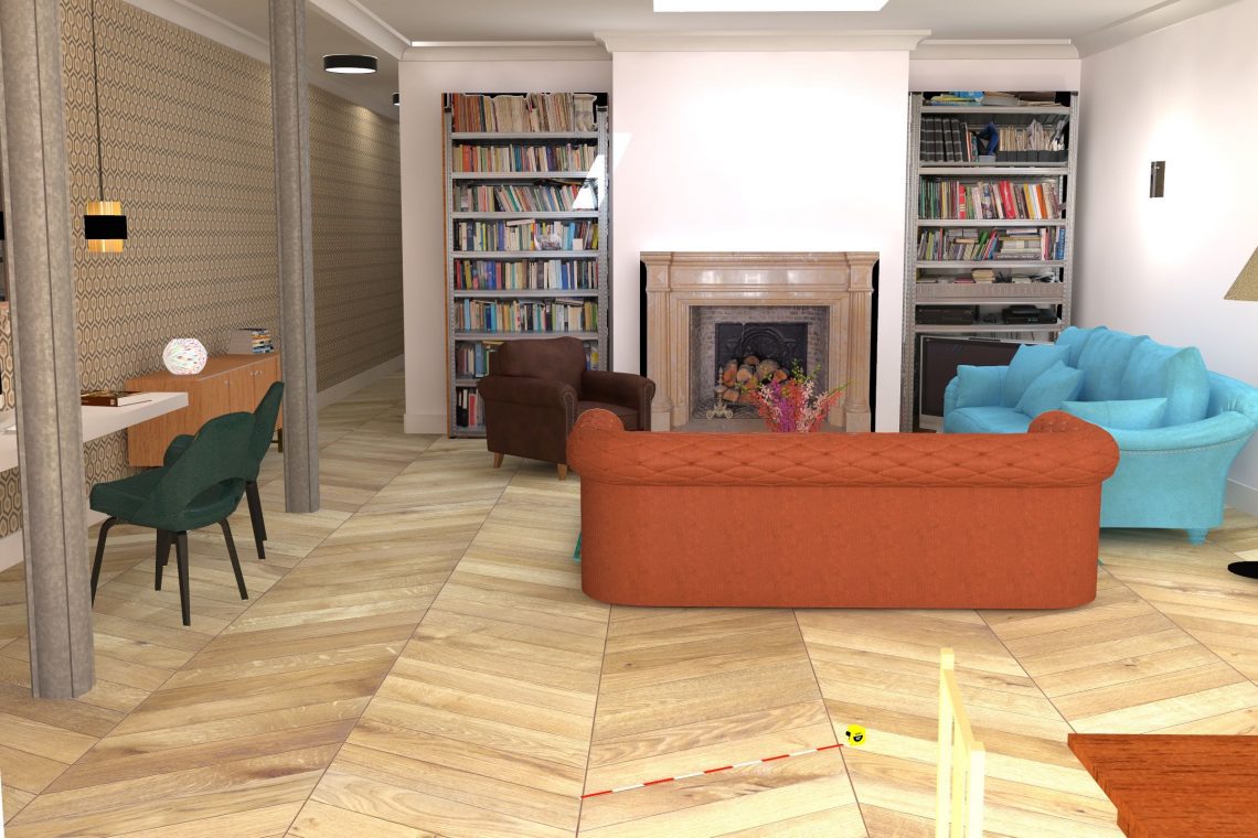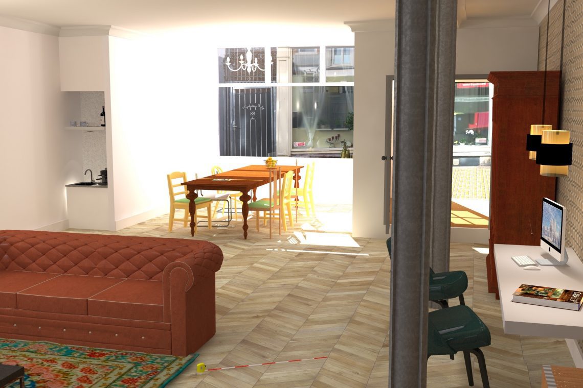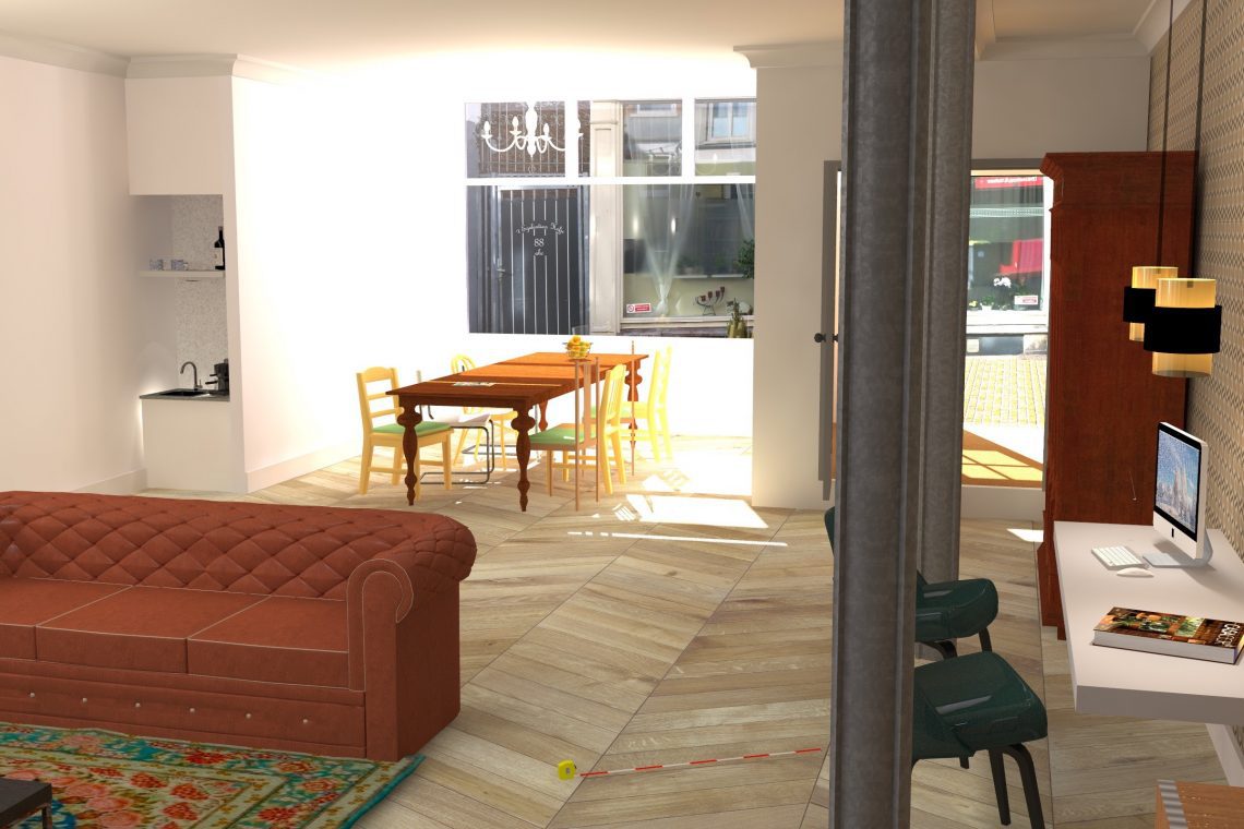 Let vooral niet op de rest van de tekeningen. We gaan heus wel ander meubilair uitzoeken, en natuurlijk ook hele andere kleuren gebruiken. Maar het geeft een aardig idee.