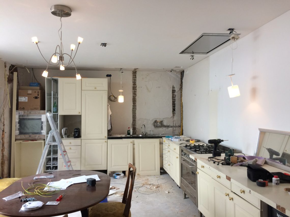 Vanmorgen om 08:30 werd onze afzuigkap op de Willemsparkweg afgeleverd, en vanmiddag om 17:00 zat hij op zijn plek in het plafond in Haarlem. Hij zuigt nog niet af, want de losse motor moet ik nog aansluiten, maar het grootste werk is nu gedaan.