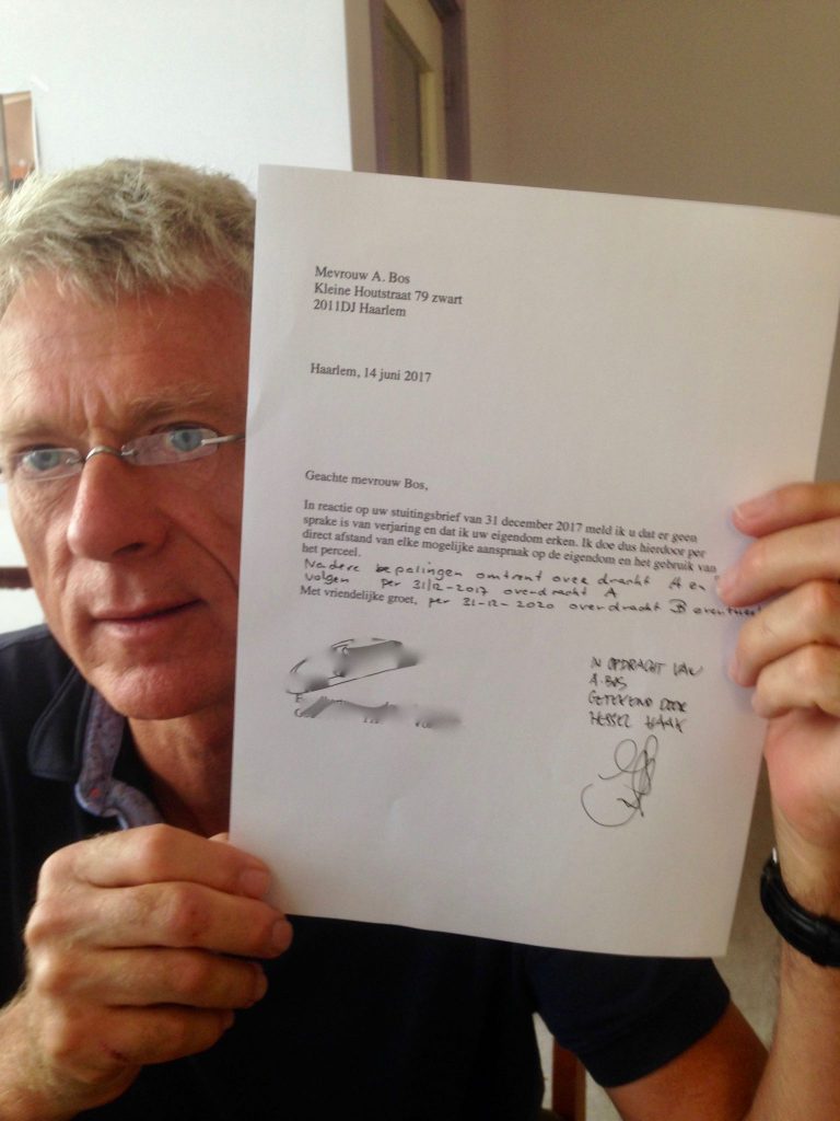 Dat krijg je ervan als je plotseling bij mensen op de stoep staat. Met een zak met geld. Meer geld dan ze de afgelopen jaren bij elkaar gezien hadden. Alle vijf de kinderen leven nu in grote armoede. Bijstand, alcoholisme, psychische chaos, het hele verhaal. Het is afschuwelijk maar waar, ons geld heeft de kinderen weer in harmonie bij elkaar gebracht. Uiteindelijk, na een paar maanden, hebben ze allevijf bij de notaris getekend. Wij waren de eigenaar van perceel 10306 geworden, onder één voorwaarde: het moest ons wel lukken om de verjaring te stuiten.