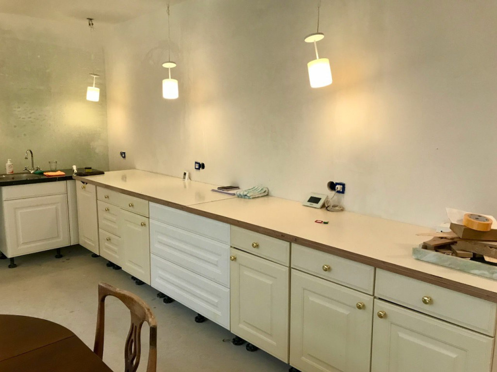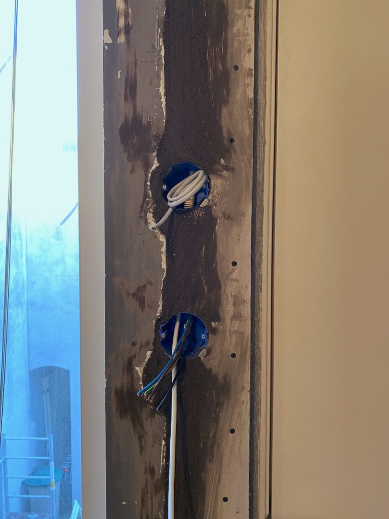 Ook moest Hessel de stopcontacten gereedmaken voor het stucen..