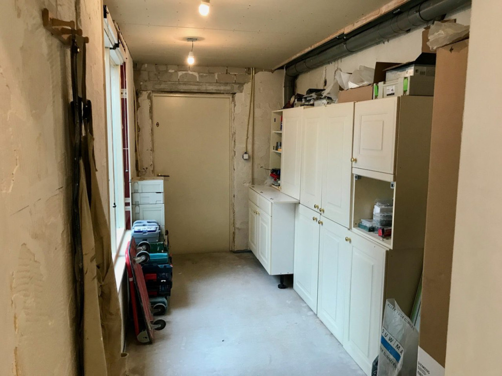 Verder moest vandaag alles opgeruimd worden, om de slaapkamers Pool-klaar te maken. Toen we binnenkwamen was Bart al aan het werk. Hij heeft vanwege het stucwerk de slaapkamerradiator afgekoppeld en de tuinwaterkraan gemonteerd. Wij brachten alle gereedschappen uit de bovenkast…naar de keuken…en uiteindelijk vanuit de keuken allemaal schoongemaakt naar hun eigen plek in de bijkeuken.