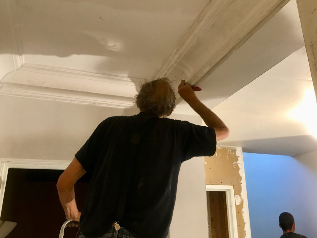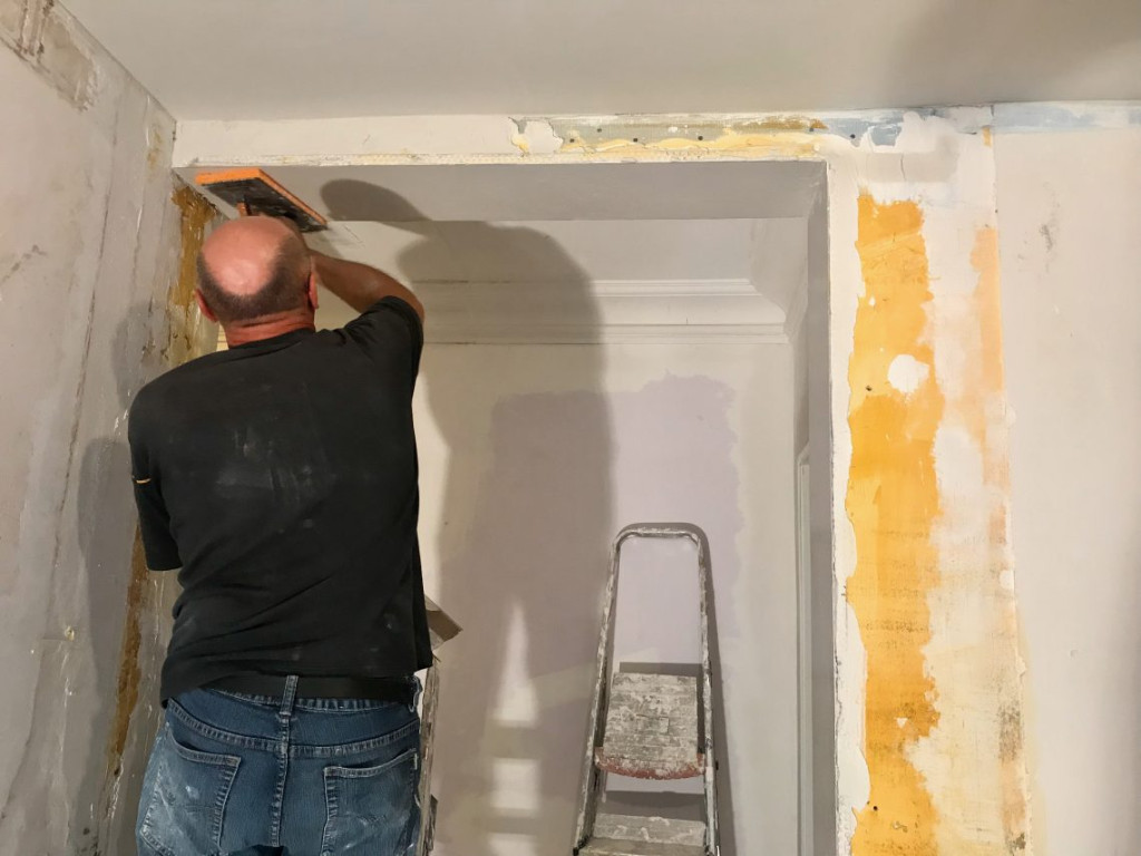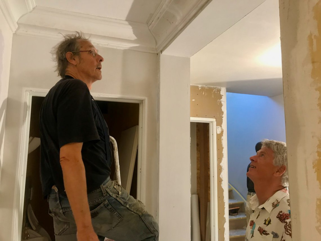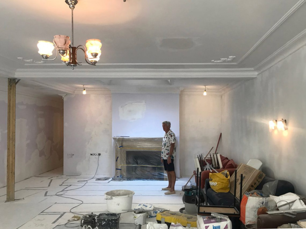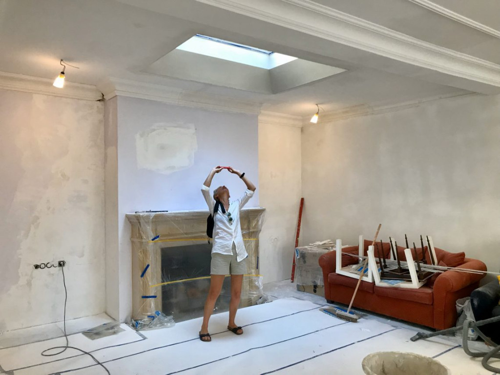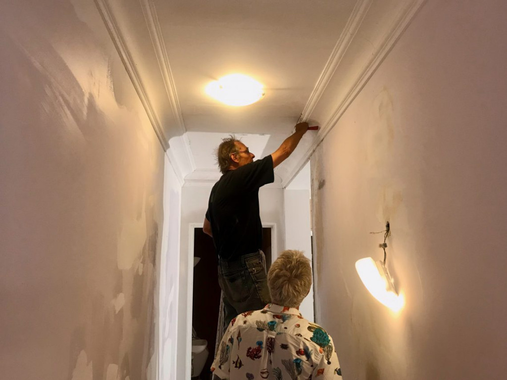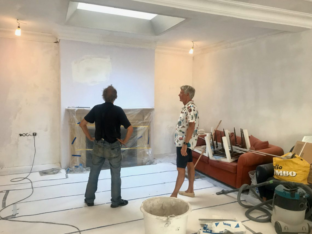 Opvallend is dat nu alles wit is, je opeens ziet dat de kamer bij de schoorsteenmantel behoorlijk scheef is. We vinden het wel authentiek, Haarlemse binnenstad.