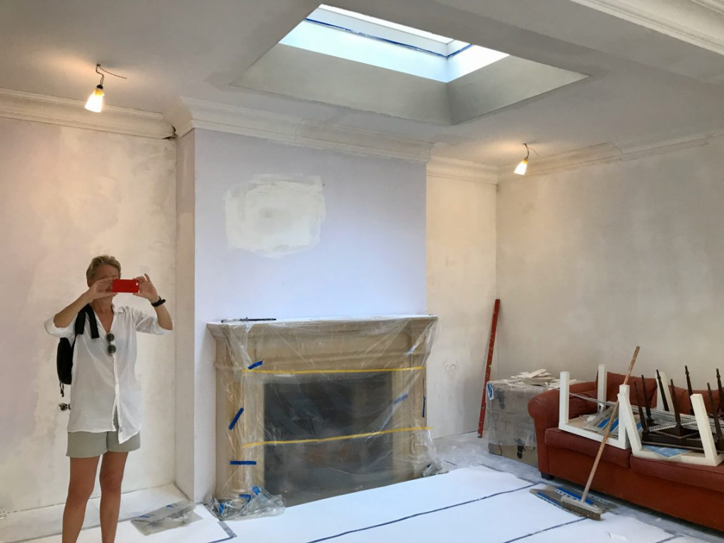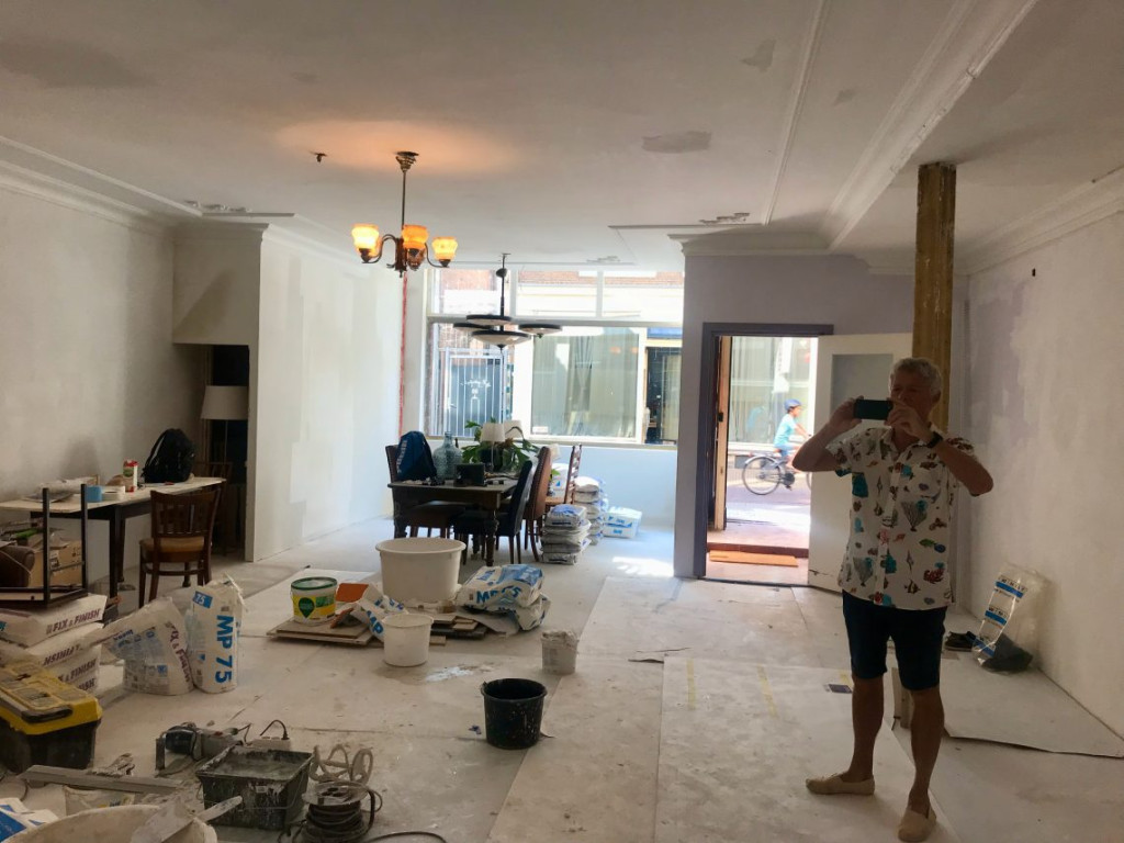 Opvallend is dat nu alles wit is, je opeens ziet dat de kamer bij de schoorsteenmantel behoorlijk scheef is. We vinden het wel authentiek, Haarlemse binnenstad.