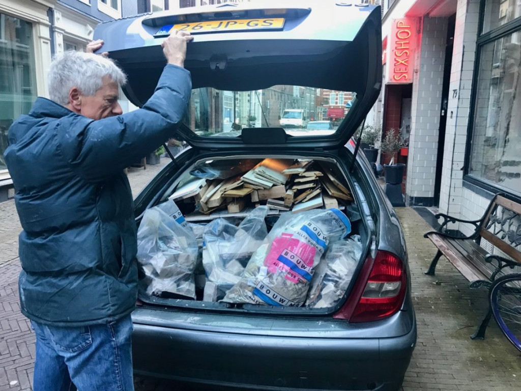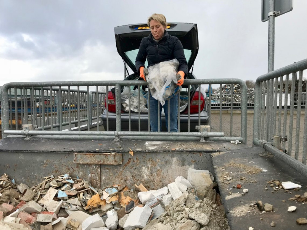 We dachten dat we twee keer zouden moeten rijden, want er was ook nog een gedeelte ‘getegelde muur’ die weg moest, maar alles bleek in een auto te passen.