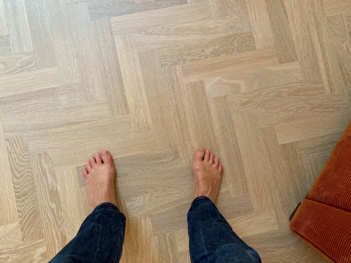 Het was een bijzonder moment. Thuis loop ik altijd op blote voeten; op dag drie kreeg ik het in mijn bol en wilde ik ontdekken hoe een eikenhouten vloer met vloerverwarming zou aanvoelen. Het voelde heerlijk! Voor het eerst sinds we het huis gekocht hebben heb ik er een hele middag op blote voeten rondgelopen. De transformatie van bouwplaats tot woning is ingezet.