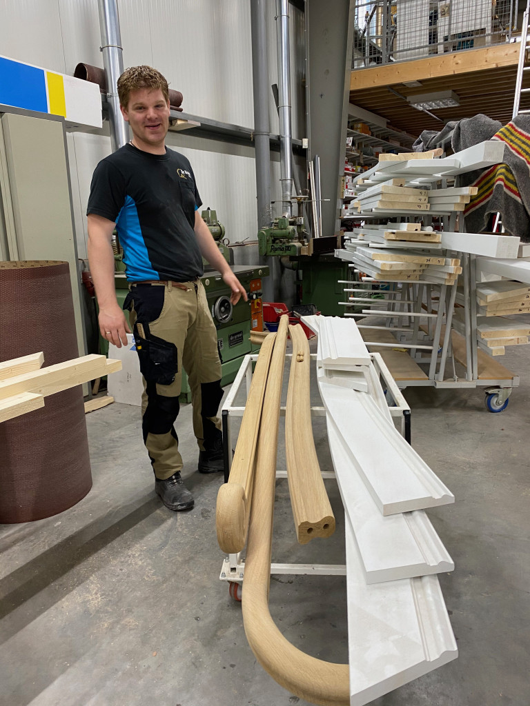Er was meer hout wat om aandacht vroeg. Jan de Kruijf belde. Dat is de trappenmaker, die onze luxe eikenhouten trap gemaakt heeft. Hij had op ons verzoek plinten bij de trap gefabriceerd, waar hetzelfde profiel in geschaafd was als in alle andere plinten op de woonetage. De plinten waren klaar.