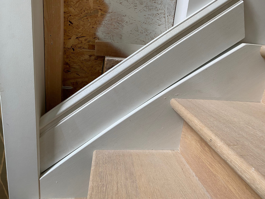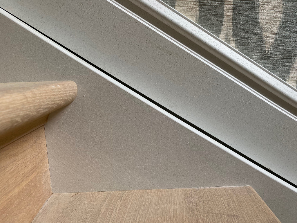 De plinten hadden een heel andere vorm dan de trap. Ik belde meteen met Jan. Die was in alle staten van ongeluk. “Perfectie” was zijn middle name. Hij begreep er niks van.