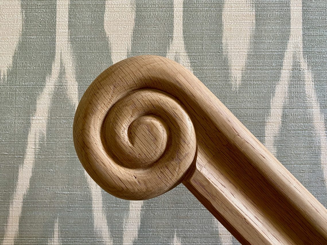 U zag het al op de foto boven dit blog, de leuningen werden ook opgeleverd. Prachtige wrongstukken (de bochten die twee rechte einden verbinden), maar vooral prachtige handgegutste krullen aan het begin en het eind van de leuning. We zijn er echt superblij mee.