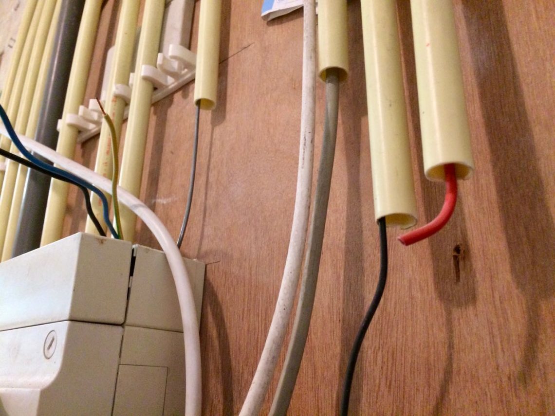 Krachtstroom was reeds op zolder aanwezig (voor de ventilatie en plantenverlichting?). Er liepen bovendien heel wat PVC-leidingen van de stoppenkast in onze hal naar het achterhuis. Sommige leidingen waren op een aparte groep aangesloten, en eindigen zonder aftakking heel geheimzinnig in onze badkamer. (wordt wiet elektrisch gewassen voordat het verkocht wordt?) Weer andere PVC-leidingen waren in gebruik voor coax kabels die de bewakingscamera’s bedienden, en er liep ook een leiding waar het brandalarmsysteem mee gevoed werd.