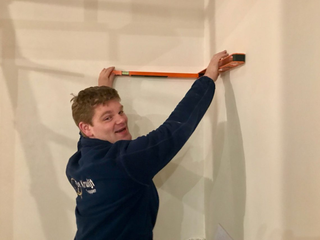 Hij had machtig mooie gereedschappen bij zich. Hoogte meters, dieptemeters, maar ik was vooral onder de indruk van zijn digitale hoekmeter.