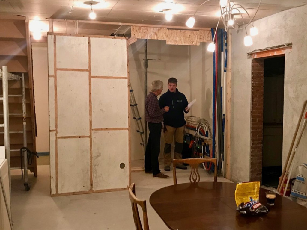 De drukste operatiezaal was afgelopen week ons trappenhuis. Met als middelpunt onze rijdende vliegtuigtrap. Eerst kwamen de stukende Polen. De trap moest weg. Toen de stuc een beetje gedroogd was, ging de trap weer terug. Gisteravond moest de trap opnieuw weg, want we kregen een trapgatmeting. Helemaal uit Waddinxveen kwam Jan de Kruijff op bezoek.