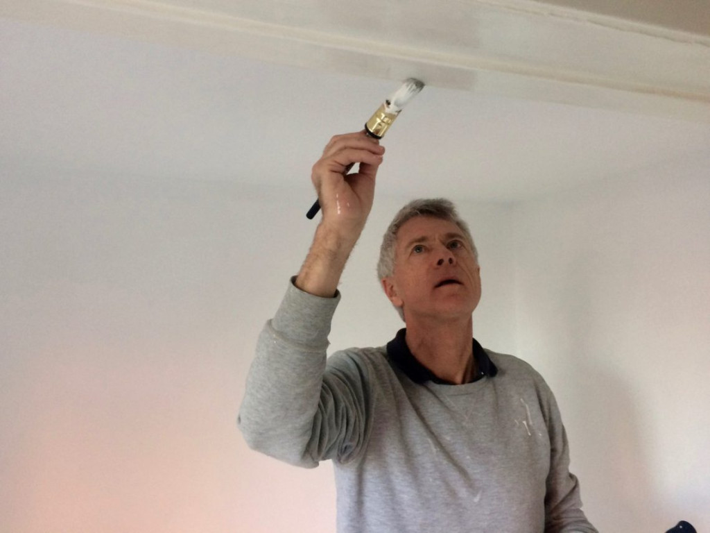 En toen we einde dag de achterkamer bekeken waren we verheugd: ja, het klopt. We schilderen het houtwerk tot aan de grote dwarsbalk, en de rest staat er prima bij nu het is schoongemaakt.