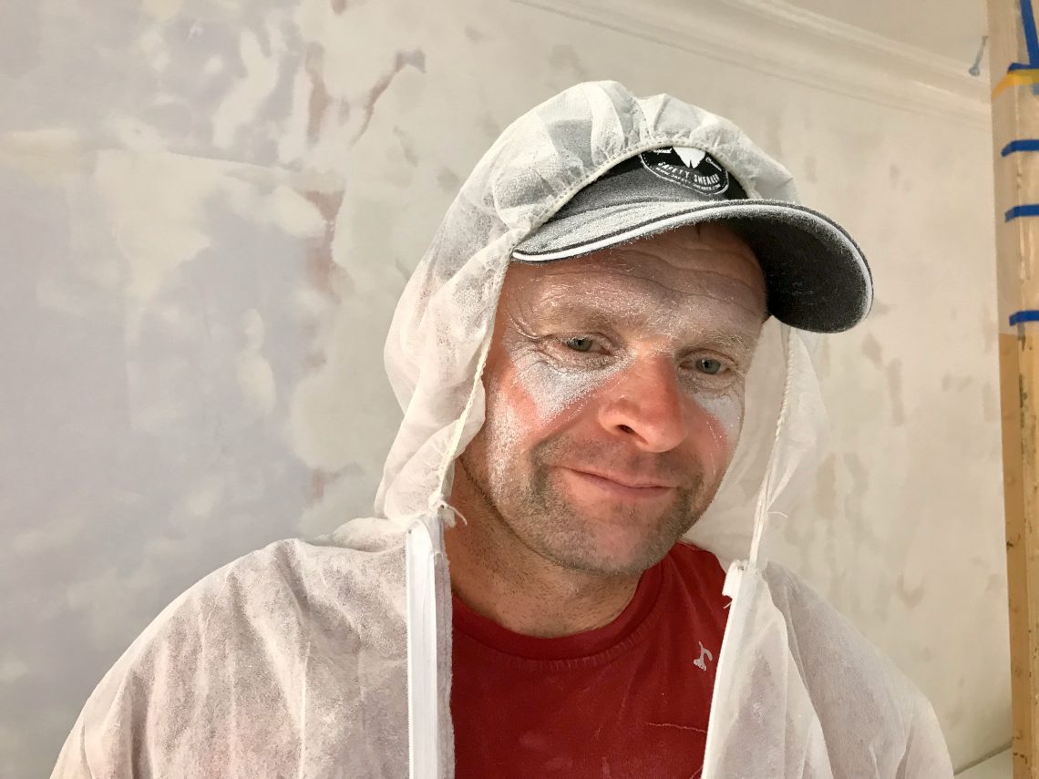 Het is gelukt. Vanaf vandaag zijn al onze beganegrond muren en plafonds gerepareerd en gestukadoord, en zijn onze plafonds helemaal wit.